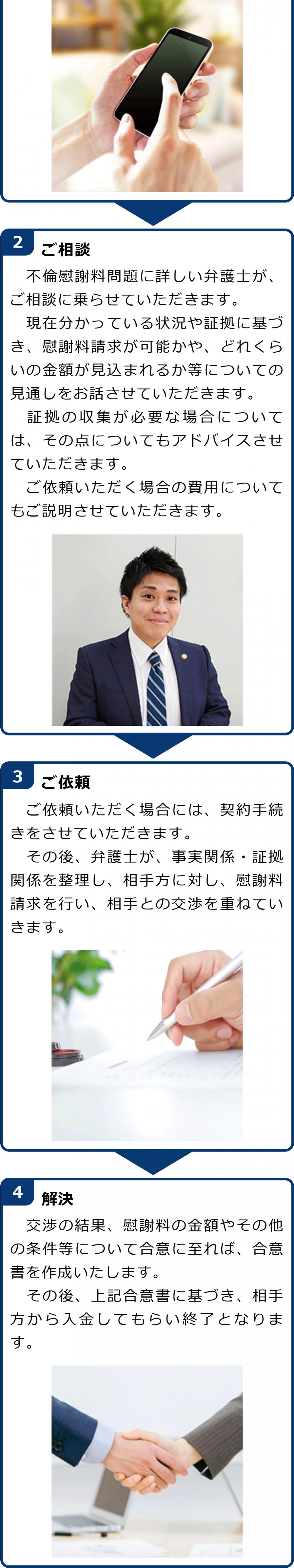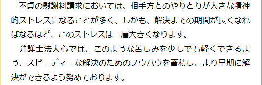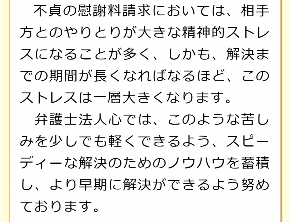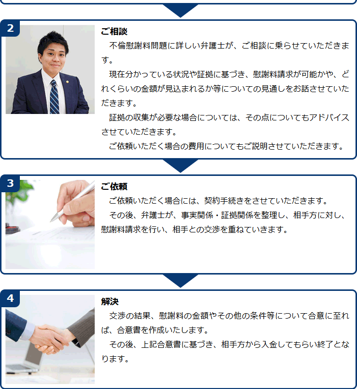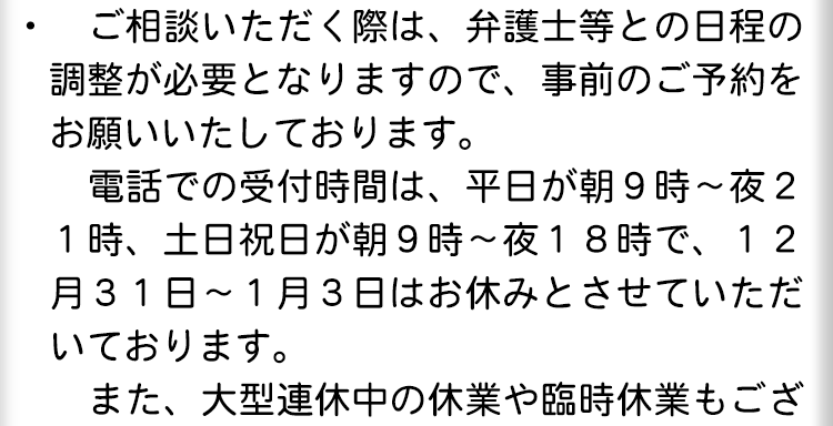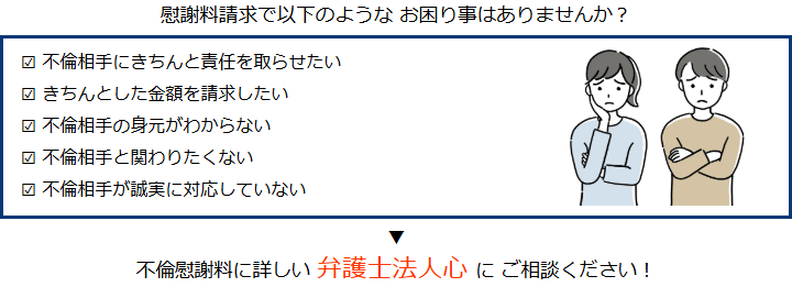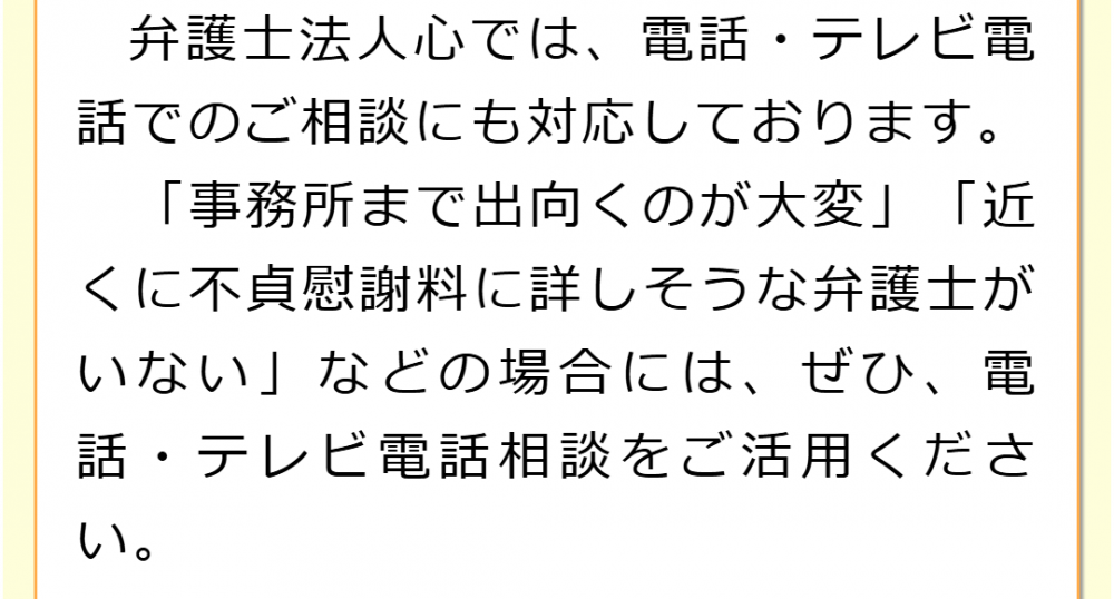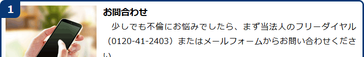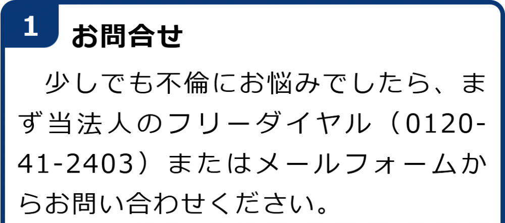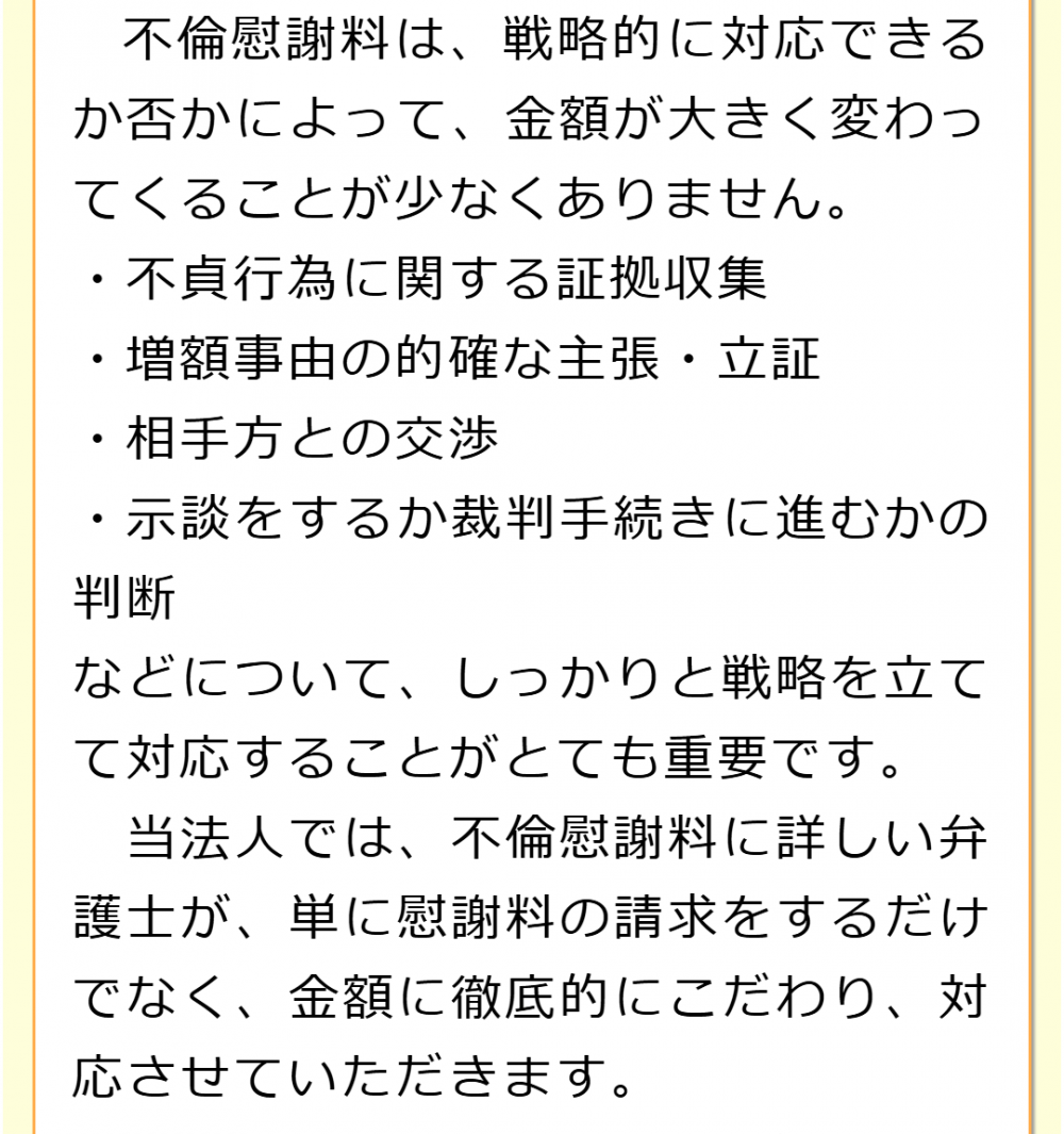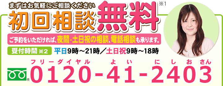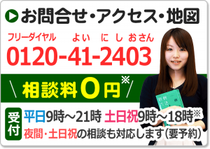 不倫慰謝料請求でお困りの方へ 閉じる 閉じる よくあるご質問 お問合せから解決までの流れ 受付時間 平日 9時~21時、土日祝 9時~18時夜間・土日祝の相談も対応します(要予約) 所在地 〒120-0034 東京都足立区千住2-4オカバツインタワービル イースト5F (東京弁護士会所属) 0120-41-2403 お問合せ・アクセス・地図